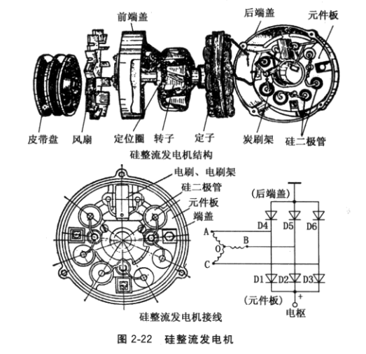 起動(dòng)系統(tǒng)的作用是使內(nèi)燃機(jī)獲得起動(dòng)所需的必要條件,使曲軸獲得必要的起動(dòng)轉(zhuǎn)速。內(nèi)燃機(jī)常見(jiàn)的起動(dòng)方式有人力起動(dòng)、電起動(dòng)等。電起動(dòng)系統(tǒng)包括起動(dòng)電動(dòng)機(jī)、蓄電池、充電發(fā)電機(jī)、調(diào)節(jié)器等,見(jiàn)圖2-19?圖2-22。