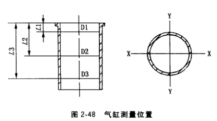(3) 氣缸套與活塞配合間隙的測量。氣缸套的最大直徑與活塞裙部直徑之差即為氣缸套