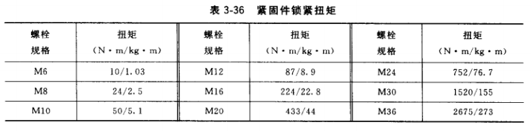 (7)裝配中緊固件的鎖緊扭矩見表3-36。