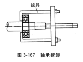 (5)拆下軸承。用圖3-167所示拔具卸下軸承,操作過程切不可碰傷軸承。