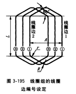為了便于了解和操作,設(shè)定圖3-195疊式線圈組中右邊為線 圈邊1,左邊為線圈邊2,并按規(guī)定的嵌線后定子繞組出線端, 面對(duì)出線端把定子鐵心槽從1號(hào)按順時(shí)針方向編到36號(hào)。