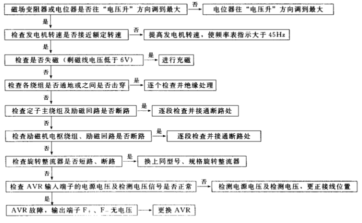 6.直流勵磁機勵磁有刷三相交流發(fā)電機不能發(fā)電故障排除步驟