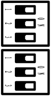 注:黑色塊表示開關所在位置,如圖6表示控制器參數(shù)設定開關組1第一通道在ON位(右側,對應表3所述的“1”),其它通道在數(shù)字側(左側,對應上表所述的“0”),下同。