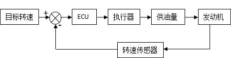 如圖3,操作人員根據(jù)工作意圖,設定相應的開關及電位器狀態(tài),從而設定電調(diào)ECU當前需要讓系統(tǒng)工作的目標轉速。ECU通過轉速傳感器獲取轉速并與當前目標轉速值比較,并與當前執(zhí)行器允許的最大允許位置比較,從而確定執(zhí)行器此時應該所在的位置并驅動其到達。執(zhí)行器位置對應的是油泵的供油量,其變化直接影響的是油泵的供油量,而供油量的變化將決定發(fā)動機轉速狀態(tài),當前這一轉速又通過轉速傳感器反饋給ECU做及時控制的判斷依據(jù)。
