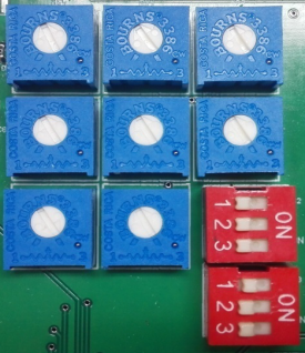 ECU56調(diào)整窗口中有圖4所示調(diào)整參數(shù)的8個旋鈕式電位器及控制器參數(shù)設定開關,與之對應的器件名稱如表1所示。