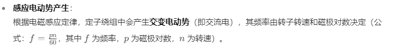 定子:固定不動,包含三相電樞繞組(輸出電能的繞組)。