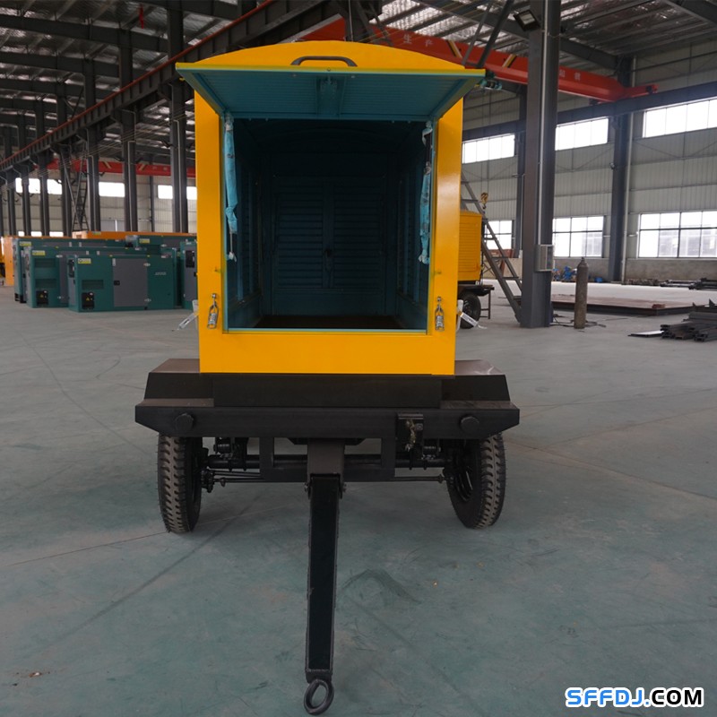 移動拖車柴油發(fā)電機組又叫移動電站,我公司參照國外移動電站結構,自行設計和生產(chǎn)的移動拖車發(fā)電機組結構多樣化,拖車車架采用檀梁焊接而成,節(jié)點選擇合理、強度高、剛性好;采用活動式掛鉤牽引,180°轉盤、轉向靈活;圓形鋼管焊接直通式車軸,同時裝有鋼板彈簧懸架結構;車架四角設有機械式支撐裝置;整車配備轉向和尾燈;車廂尺寸根據(jù)規(guī)格大小而定,操作人員可在四周行走,便于操作和維護;顏色可由業(yè)主自定,確保美觀;設計獨具創(chuàng)新,機動性高、重心低、制造精良、外形美觀,結構緊湊,安全可靠。