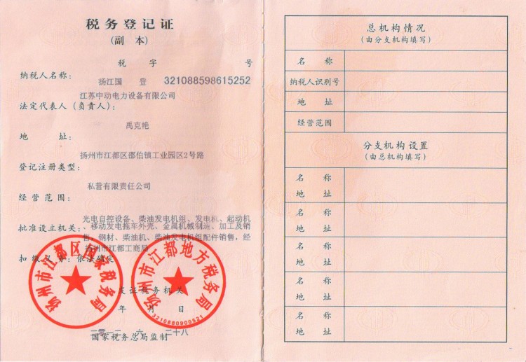 • 產品:中動稅務登記證