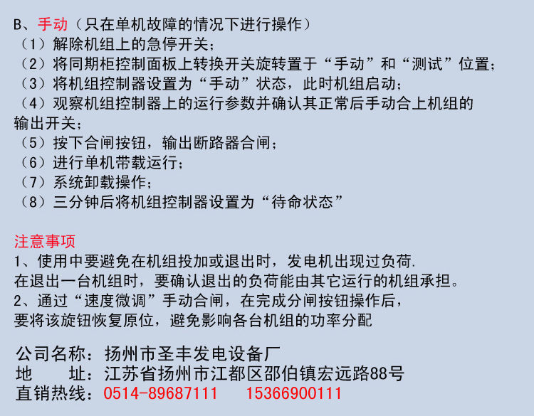 2. *揚州市圣豐發電設備廠專業生產銷售進口、國產柴油發電機組。24小時服務電話:15366900111。